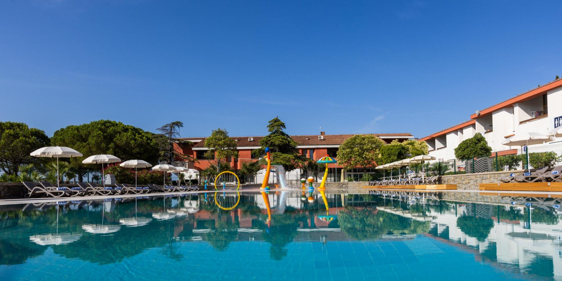 Mind a két szálloda Portoroz és Piran óvárosok között, a St. Bernardin szállodaegyüttesben, a tengerparton található. Hotel Histrion fedett tengervizes medencéje díjmentesen igényben vehető, mind a két szálloda vendégei számára, a wellness szolgáltatásáért viszont fizetni kell. Bérelhető nyugágyak és napernyők a strandon és a Vile Parknál lévő nyitott medencénél.
