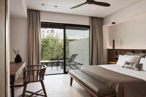 - Az ötcsillagos szálloda a tradicionális és modern építészeti elemeket ötvözi. A hotel szolgáltatásaihoz 24 órás recepció, kültéri medence (10:00-18:30 között üzemel), ingyenes napernyőkkel és napágyakkal, fitneszterem, kültéri jóga és pilates órák várja a vendégeket. A helyi ételekről és italokról az ,,Olibar" elnevezésű bár, valamint ,,Flya"étterem gondoskodik, amely a korfui és a mediterrán konyha egyedi ízeit kínálja.
