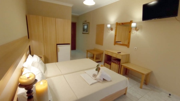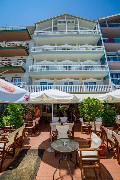 Közvetlenül a tengerparton épült háromcsillagos hotel, mely Paralia központjában található a Panorama Hotel mellett.
