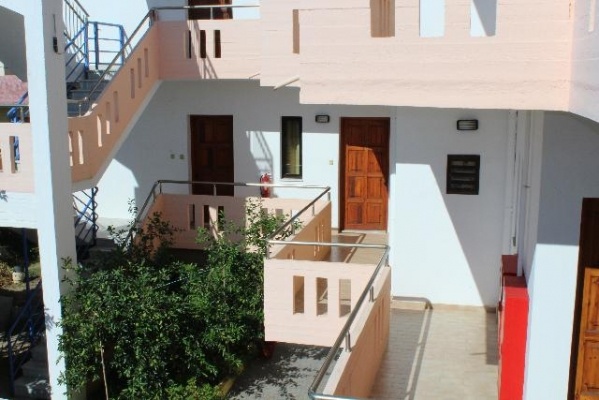 A mozgalmasabb Ag. Marina településen elhelyezkedő, családi irányítású, háromszintes (lépcsős) apartmanház. A 16 szobás épület elhelyezkedése kitűnő, hiszen a tengerparttól kb. 50 méterre található, melyre a kertjén keresztül lehet lejutni. A stúdiók a régebbi épületben helyezkednek el.