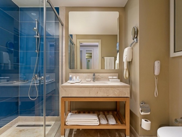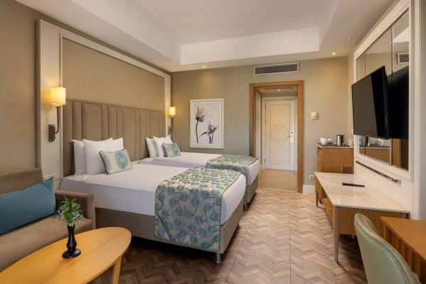 SZOBÁK: erkély vagy terasz o központi légkondicionálás o hajszárító o TV o telefon (térítés ellenében) o széf o minibár o tea- és kávéfőző szett o vízforraló o köntös és papucs o wifi o Standard szoba: 26 m?, max. 3 vagy 2+2 fő o Annex standard szoba: 26 m?, max. 2+1 fő, melléképületben o Családi szoba (melléképület): 39 m?, max. 3+1 fő, 2 hálószoba ajtóval elválasztva, emeletes ággyal o Duplex suite: 65 m?, max. 3+1 fő, 1 hálószoba és 1 nappali, jacuzzival o Junior suite: 65-85 m?, max. 3+1 fő o Colonel suite: 120 m?, max. 5+1 fő, 2 hálószoba és 1 nappali, 2 fürdőszoba, jacuzzival, tengerre néző oAdmiral suite: 80-150 m?, max. 5+1 fő, 2 vagy 3 hálószoba, jacuzzival