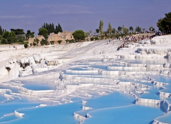 Reggeli után egy hosszabb utazás után érkezünk meg Pamukkale városába, ami termálvizeiről híres. A szikrázóan hófehér mészkőmedencéket a földfelszín alól feltörő, és a domboldalon lezúduló forrásvíz hozta létre, meseszerű tájképet kialakítva. A látvány nemcsak gyönyörű, hanem a termálvíz gyógyító hatásáról is ismert, amely évszázadok óta vonzza a látogatókat. Pamukkale egyedülálló természeti csoda, amely az UNESCO világörökségi listáján is szerepel. Érkezéskor megtekintjük Pamukkale mészkőmedencés teraszait (pamutvár) és Hierapolisz romjait. Körbesétáljuk ezt a különleges természeti jelenséget, majd megmártózhatunk a természetes források vizében. Elfoglaljuk szállásunkat és vacsora (1 éj).