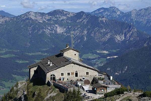 Berchtesgaden: az Alpok lábánál fekvő kis város nem messze az osztrák-német határtól. A városka felett található az 1835 méter magas Kehlsten csúcsa, ahol Hitler egykori üdülője, a Sasfészek látható.