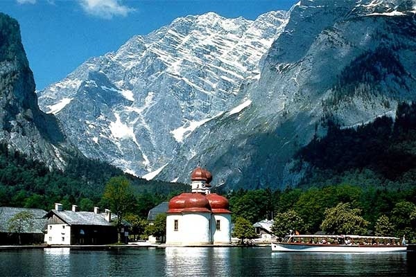 Délután fakultatív hajókázás Königssee festménybe illő környezetében. Pihenő, fakultatív sült és füstölt pisztráng kóstolási lehetőség a tó közepén található szigeten, ahol megtekintjük a St. Bartholomä templomot (rossz idő esetén a salzburgi vár megtekintése) - séta a Klessheimi kastély körül, ahol Hitler és Horthy többször is találkozott - Weithwörth - Eggelsberg - szállás Salzburg környékén.