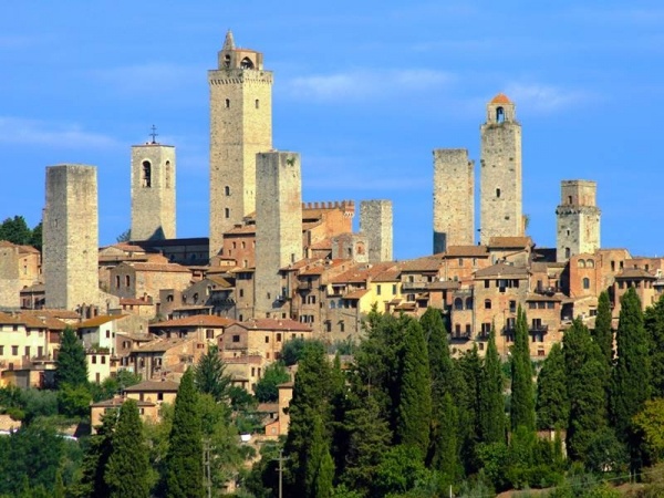 Reggeli a szállodában, majd Toszkána semmihez sem hasonlítható, ciprusokkal szegélyezett dombjainak és lankáinak felfedezésére indulunk. Először Sienaba, Európa legnagyszerűbb gótikus városába látogatunk el. A város a középkori kereskedők és bankok "mekkája" volt egykor. Ismerkedés a város legfontosabb látnivalóival gyalogos séta keretében: a híres kagyló alakú főtér, az Il Campo, Palazzo Pubblico, Torre del Mangia, és a híres szökőkút, a Fonte Gaia, valamint a kihagyhatatlan Dóm. Másodikként a középkorban sok évtizedig bevehetetlennek tartott Monteriggioni települést tekintjük meg. A várost a Sienai Köztársaság építette az 1200-as évek első felében, Firenze megállítására akkor, amikor a két rivális gazdasági és politikai okok miatt hadilábon állt egymással. Összesen 15 torony található a városfalak mentén, ami a Monte Ala tetején úgy néz ki, mint egy korona. Délután látogatás San Gimignanoba, a "tornyok városába", ahol a szűk utcácskák egy hangulatos sétára csábítanak. Visszaérkezés a szállodába az esti órákban. Vacsora.