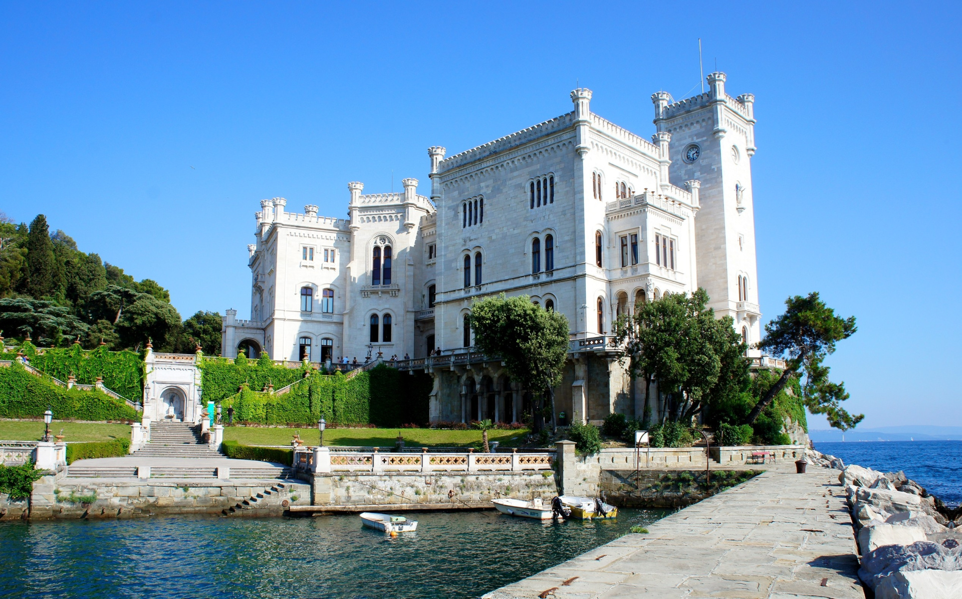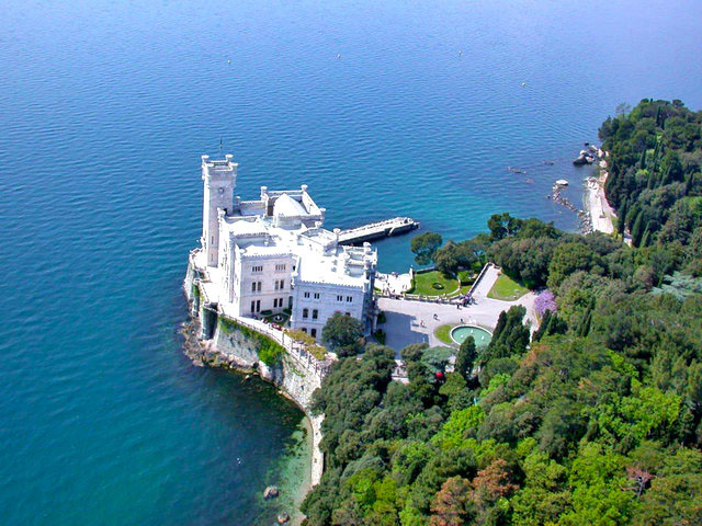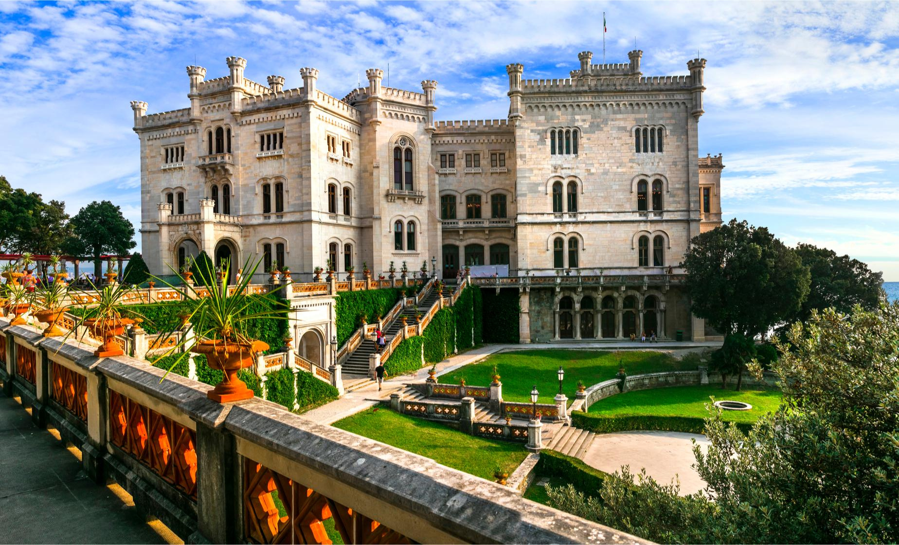 A Trieszti-öbölben, csodálatos környezetben épült 19. századi romantikus kastély pazar teraszán gyönyörködhetünk az Adriai-tengerben. A kastélyban található múzeum megtekintése mellett érdemes körbesétálni az olasz stílusú kertben, ahol az egész világból összegyűjtött növényfélékkel találkozhatunk. A terjedelmes 22 hektáros tengerparti parkot maga Miksa főherceg tervezte.