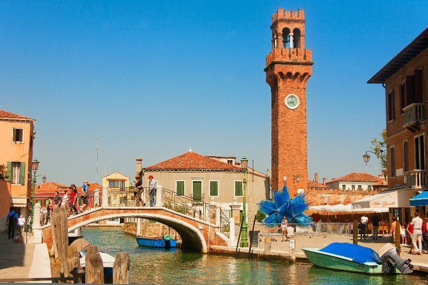 Majd áthajózunk Murano szigetére, ahol egy üvegműhelyben a szemünk láttára készíti el az üvegmester becses portékáját. Nagyon nagy élmény látni, hogy a nagy múltú muránói üveg egy izzón folyó anyagból miként formálódik percek alatt csodálatos kehellyé, vagy figurává. Az üvegműhelyben sok érdekességet hallhatunk az üvegkészítés fortélyairól, Murano jellegzetességéről.