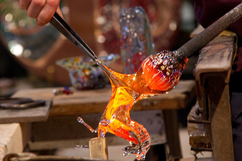 Majd áthajózunk Murano szigetére, ahol egy üvegműhelyben a szemünk láttára készíti el az üvegmester becses portékáját. Nagyon nagy élmény látni, hogy a nagy múltú muránói üveg egy izzón folyó anyagból miként formálódik percek alatt csodálatos kehellyé, vagy figurává. Az üvegműhelyben sok érdekességet hallhatunk az üvegkészítés fortélyairól, Murano jellegzetességéről. Utunkat a tengeren hajózva folytatjuk.