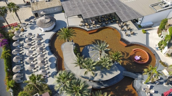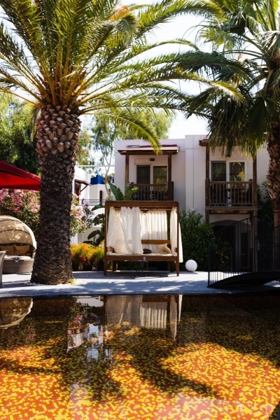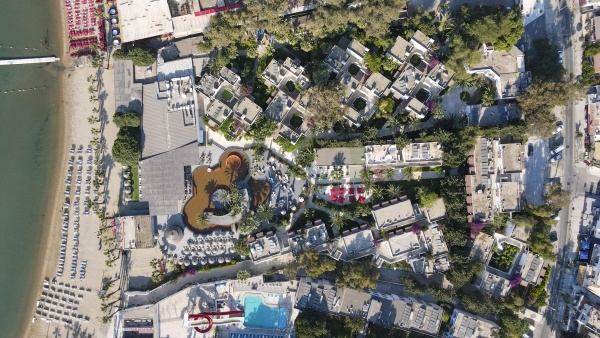 A modern, 16 éven felülieknek épült dizájnszálloda több kétszintes épületből áll és egy gyönyörű kertben, közvetlenül a homokos strandon, Gümbet központjában fekszik, ahol számos bár és üzlet található. Buszmegálló közvetlenül a szállodánál.