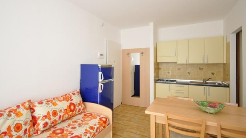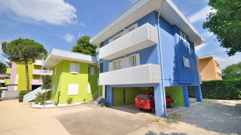 A kis apartmanház közvetlenül Bibione sétálóutcája közelében, a Via dell'Acquario-n található.