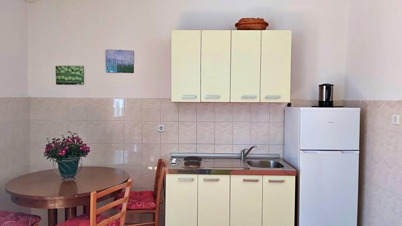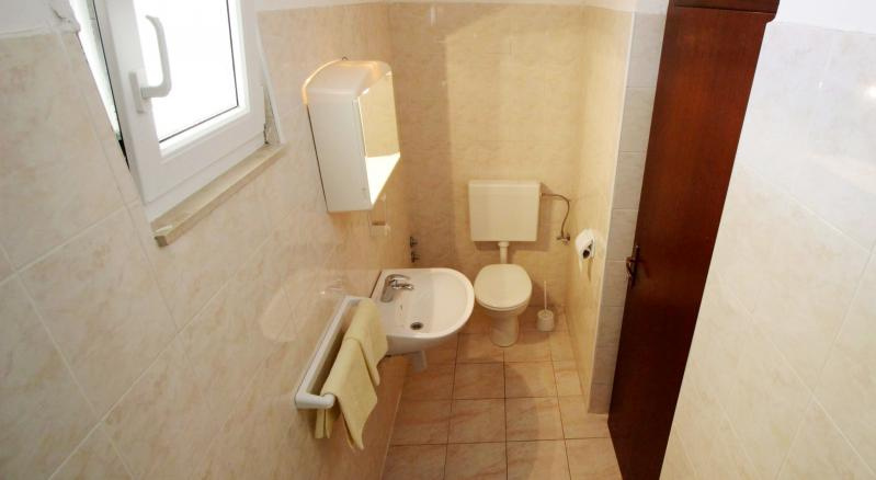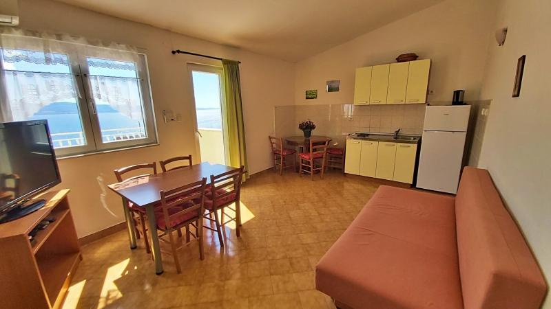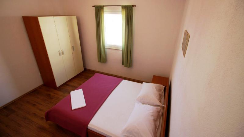 B4+2 apartman /2 db; 1. és 2. emeleti (2 db kétágyas hálószoba, nappali kihúzható dupla ággyal (1 felnőtt vagy 2 gyermek részére), TV, klíma, konyhasarok, étkezőrész, 2 fürdőszoba, tenger felőli erkély).