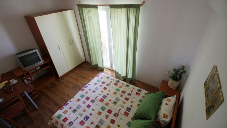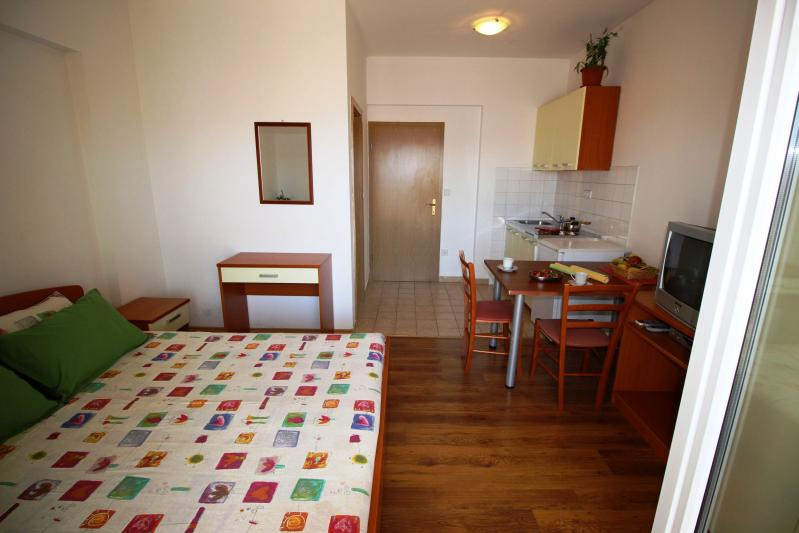 S2 stúdió /2 db; 1. és 2. emeleti (egylégterű, két ágy, konyhasarok, étkezőrész, TV, klíma, fürdőszoba, tenger felőli erkély).