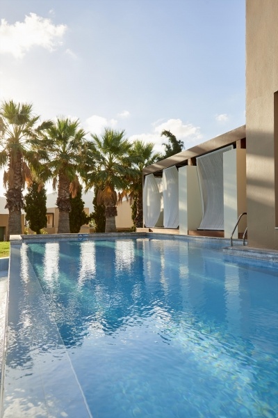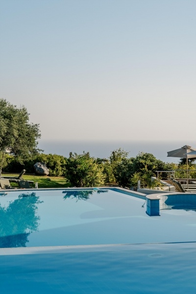 A kitűnő, 5 csillagos szálloda minőségű, magas színvonalú szolgáltatásokkal és gazdag All Inclusive ellátással várja a vendégeket. A kb. 6 km-re fekvő tengerpartra ingyenes transzferbusszal lehet eljutni. Hersonissos központja kb. 6 km. A közelben egy golfpálya is található kb. 2,5 km-re.