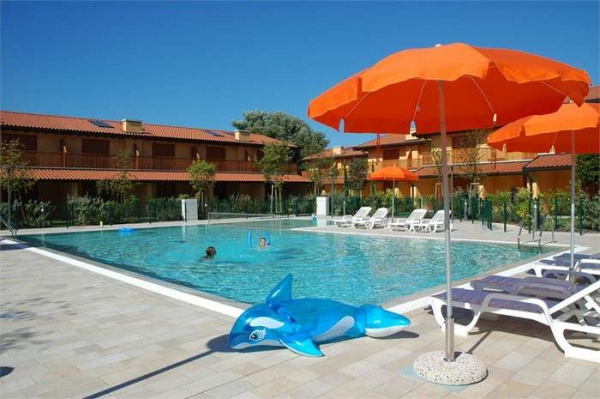 Fekvése: Lignano Sabbiadoro-n található, teljesen zárt üdülőfalu 28 db kétszintes épületből áll, melyek egy nagy, központi zöldövezetben találhatóak medencével és napozó terasszal. A komplexum kb. 300 méterre a tengerparttól és kb. 500 méterre a központtól található. Minden házhoz tartozik saját veranda, kerti kandalló, elkerített privát kert, fedett parkoló vagy garázs, légkondicionálás, sat-TV, mosógép, mosogatógép, széf és videós kaputelefon.