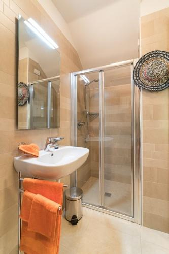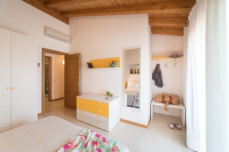 Apartmanok: C6: 4-6 fő részére 2 szinten; Földszinten: kert, fedett terasz grillel, nappali kétszemélyes kanapéval, főzősarok, fürdőszoba, tároló helyiség. Első emeleten: 1 szoba franciaággyal, 1 kétágyas szoba, fürdőszoba, terasz, fedett kültéri parkoló vagy garázs.