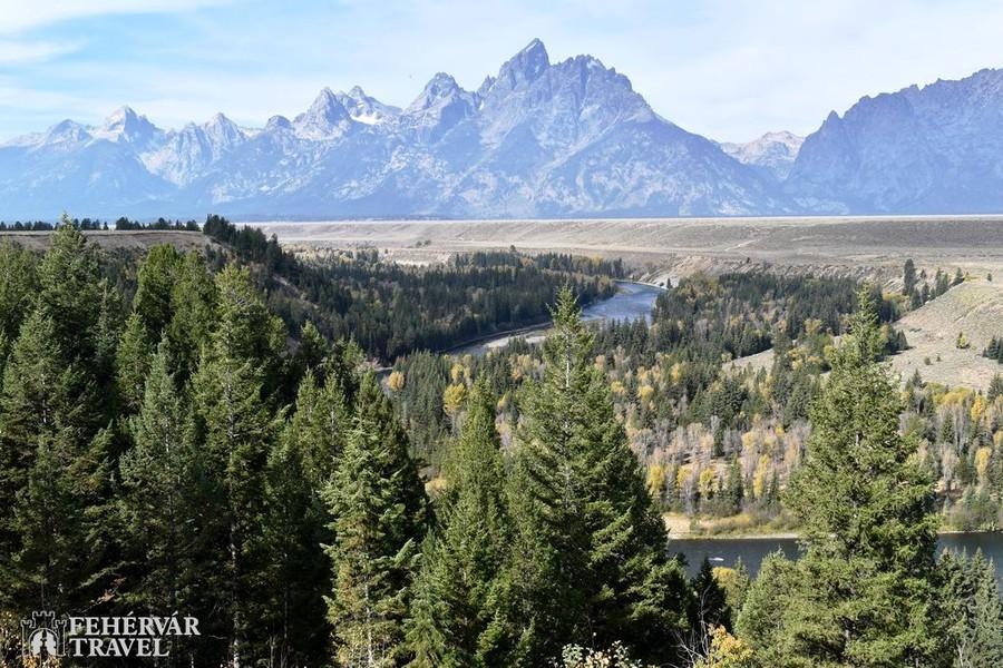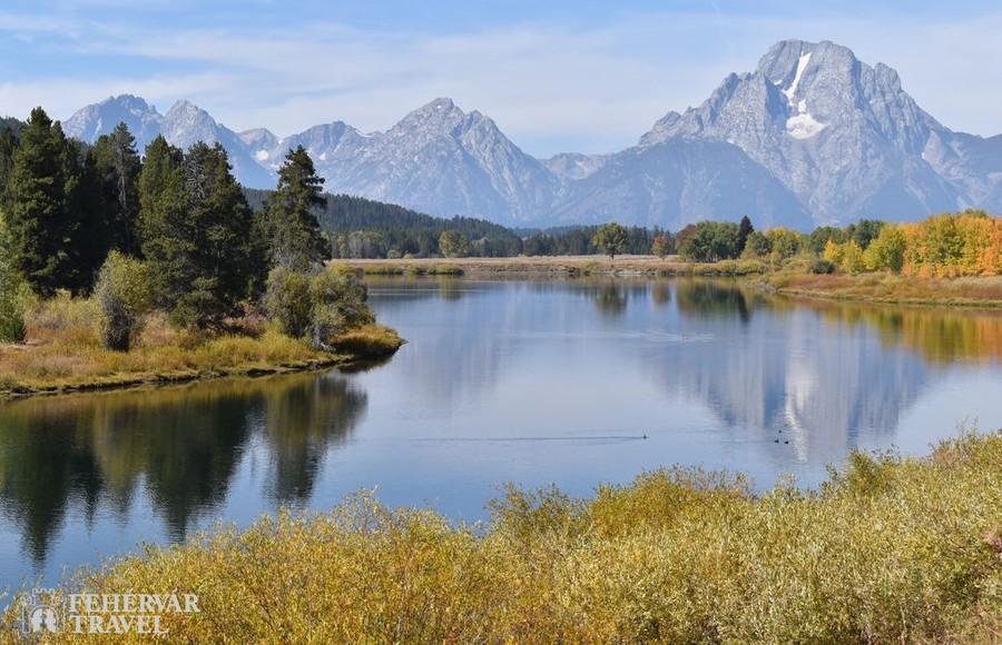 Búcsúzásképpen a Yellowstone-tól rövid pihenő a szivárvány színeiben pompázó Grand Prismatic Springnél, mely az USA legnagyobb meleg vizes forrásának számít, majd a Yellowstone-tó partját érintve déli irányba hagyjuk el a parkot.Érkezés a Grand Teton Nemzeti Parkba a késő délelőtti órákban. A park névadója a 4199 méter magas hóval és kisebb gleccserekkel borított Grand Teton, melyet további kilenc 3700 méter feletti hegycsúcs vesz körül. Az alpesi hangulatot kisebb-nagyobb tavak és látványos kilátópontok teszik teljessé (fotószünetek). Pihenő Moose-ban a Színeváltozás-kápolnánál, majd a látogatás csúcspontját jelentő Teton Park Road nevű panorámaút következik: fotószünet egy idillikus szépségű, kristálytiszta vizű tengerszemnél, a String-tónál, majd hosszabb megálló a Jenny-tó partján (az út során itt leszünk a legközelebb a Grand Teton csúcsához).Ezután továbbutazás a hamisítatlan vadnyugati hangulatát kiválóan megőrző, élettel teli üdülővárosba, Jacksonba (1 éj). A szállodai szobák elfoglalását követően még marad idő egy kis sétára a városka központjában is.
