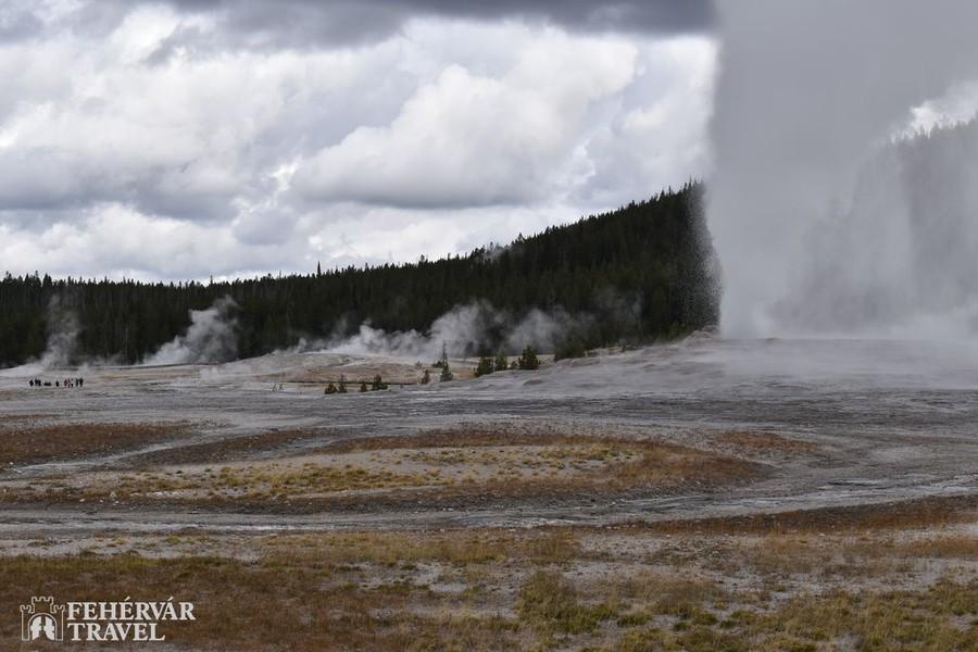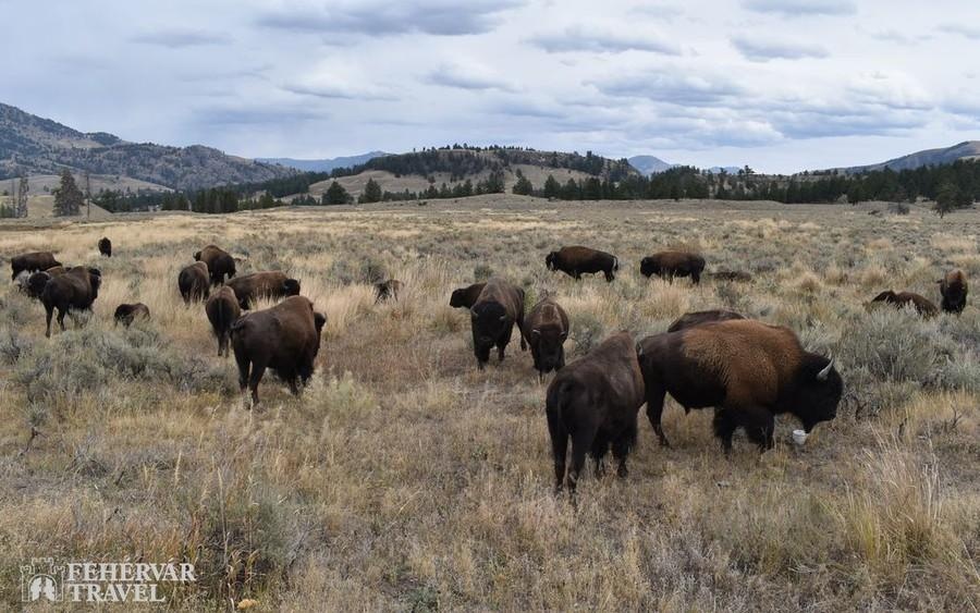 Továbbutazás Utah északi részén és Idaho államon keresztül az Idaho, Montana és Wyoming határvidékén – nagyobbrészt utóbbi területén – fekvő Yellowstone Nemzeti Parkba. A világ legrégebbi nemzeti parkját 1872-ben alapították. A hatalmas területű, 2400 méteres tengerszint feletti magasságban található terület legfőbb vonzerejét azok a sajátos geotermikus jelenségek adják, melyek egy 650.000 évvel ezelőtti vulkánkitörés eredményeként jöttek létre, de természetesen a táj szépsége és a lenyűgözően gazdag állatvilág (bölények, vapitik stb.) is rengeteg turistát csábít erre a vidékre. Nem véletlen, hogy a Yellowstone Nemzeti Park az elsők között került fel az UNESCO világörökség listájára is.A parkkal való ismerkedés első állomásaként látogatás a leghíresebb gejzír, az Old Faithful környékére. A magyar nyelvre leginkább „A jó öreg Hűséges”-ként fordítható gejzír nevéhez méltóan megbízható: nagyjából másfél óránként tör ki, így utasaink akár két kitörést is megnézhetnek majd. A kitörések között lehetőség a látogatói központ megtekintésére, valamint az érdeklődők egy sétát tehetnek idegenvezetőnkkel az ún. Felső Gejzír Medencében, ahol további gejzírek, fortyogók, hőforrások és egyéb látványos geotermikus alakzatok szegélyezik a jól kiépített sétautat. Szerencsés esetben itt további kitöréseknek is tanúi lehetnek a látogatók.A késő délutáni órákban szabadidő a park határán fekvő West Yellowstone városkában, mely egy igazi turistaváros éttermekkel, boltokkal, szórakozási lehetőségekkel. Ezt követően továbbutazás a West Yellowstone környéki szállodába (2 éj).Megjegyzés: A csoportok számára a nemzeti park területén gyakorlatilag lehetetlen szállást foglalni, hiszen a park területe alapvetően lakatlan, ott mindössze 5-6 szálloda üzemel. Emiatt a csoportok általában West Yellowstone környékén alszanak.