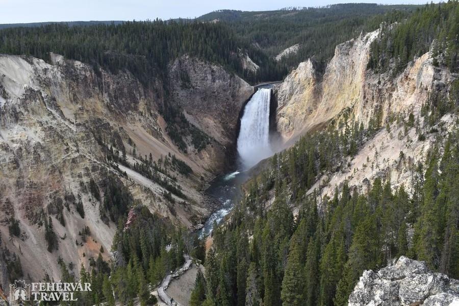 Az egész napot a Yellowstone Nemzeti Park területén töltjük. Délelőtt utazás a Yellowstone folyó által kivájt híres szurdokhoz, mely sárgás színeivel és végében a 94 méter magas Lower Falls-vízeséssel méltán nyerte el a Grand Canyon of Yellowstone nevet. A látogatás során autóbuszunkkal a szurdok északi és déli peremén kiépített úton egyaránt végigmegyünk (3-4 fotószünet), majd pihenőt tartunk Canyon Village településen (izgalmas látogatói központ, vásárlási és étkezési lehetőség).Délután továbbutazás a Yellowstone Nemzeti Park adminisztrációs központjaként is szolgáló Mammoth Hot Springs irányába, melynek legfontosabb attrakciói a törökországi Pamukkaléra emlékeztető meleg vizes mészkő-teraszok. Ismerkedés a látogatói központ érdekes múzeumával, majd séta a legszebbnek tartott teraszok között.