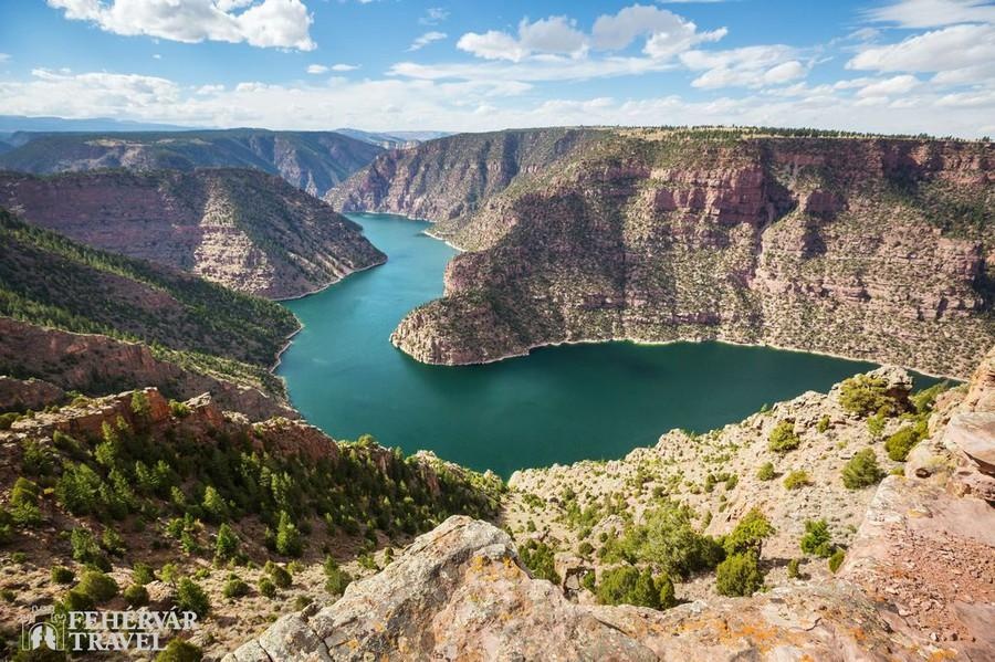 Búcsú Wyomingtól, utazás szép hegyvidéki tájakon keresztül Utah államba. Útközben fotószüneteket tartunk a Flaming Gorge (Lángoló szurdok) nevű mesterséges tónál, mely vörös színű üledékes kőzeteiről kapta a nevét. A legnagyszerűbb látványt a Red Canyon-kilátó nyújtja a déli irányba elkeskenyedő tó egyik kanyarulata felett, de a völgyet lezáró látványos gátnál is megállunk majd.Szállás Vernalban (1 éj).