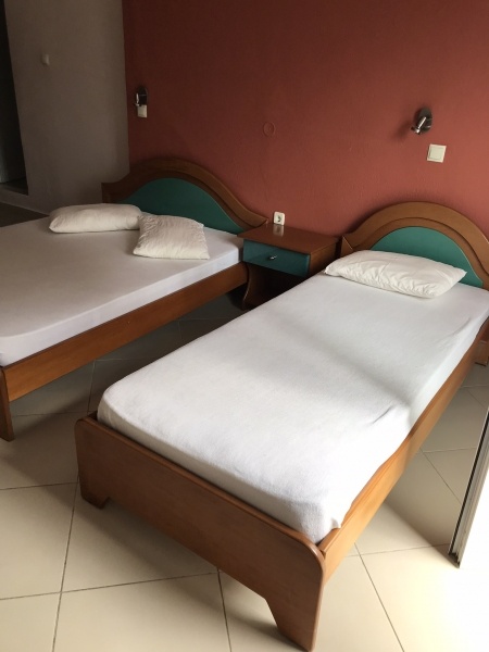 - A stúdiók légkondicionálóval (felár a helyszínen fizetendő, 42 EUR/készülék/hét), sat-tévével, konyhasarokkal - mely a legszükségesebb eszközökkel van felszerelve-, zuhanyzós fürdőszobával, valamint kerti bútorokkal berendezett balkonnal vagy terasszal rendelkeznek. Törölköző nem tartozik az apartman felszereltségéhez.