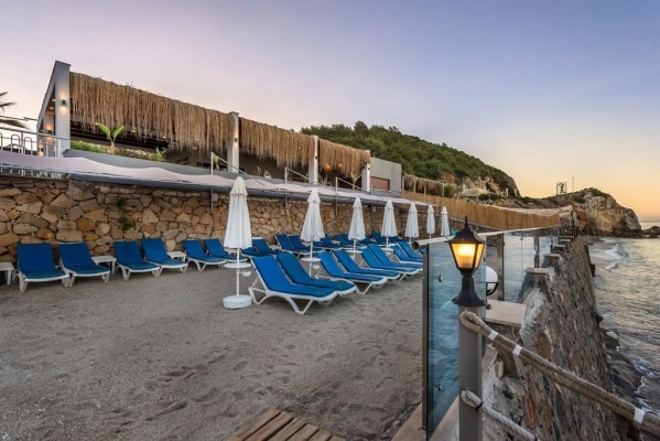 TENGERPART: kb. 50 m-re a szállodától o egy úttal elválasztva o homokos o napernyők, napozóágyak és strandtörölközők ingyenesen o privát pavilonok térítés ellenében